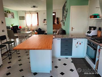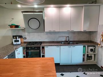 Dimensioni: Altezza: 240 cm Lato lungo: 360 cm Lato di congiunzione (tavolo/piano cottura): 268 cm Caratteristiche: -Top in Granito (senza sbeccature con trattamento impermealizzante) -Tavolo Listellare (misure 180 x 90 cm) -Ferramenta Grass e Salice Inclusi lavello Franke e illuminazione LED Elettrodomestici esclusi. Smontaggio e trasporto a carico dell'acquirente. Qualora fosse necessario, posso incaricare io un trasportatore di mia conoscenza per agevolare il trasporto.