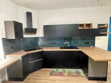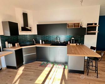 Cucina con penisola, praticamente nuova, completa di elettrodomestici( forno,frigo, lavastoviglie, cappa,microonde e piano ad induzione. Smontaggio e trasporto a carico dell’acquirente.