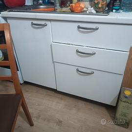 cucina con pensile cola piatti,pensile spezie e pensile dispensa lavabo ad una vasca 1m-87h-68 con tre cassetti, 34cm-60cm-h78cm