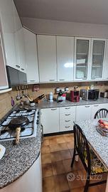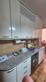 Cucina con doppio angolo, con tanti componenti componibili adatta a qualsiasi tipo di configurazione, piani in vero granito completa di tavolo e sedie, frigo doppia porta e lavello doppio in resina, esclusi forno e lavastoviglie. Vendo a prezzo simbolico per cambio casa.