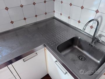 Cucina con piano angolare inox pezzo unico