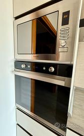 Piano cottura ad induzione, lavastoviglie, colonna forno con microonde.