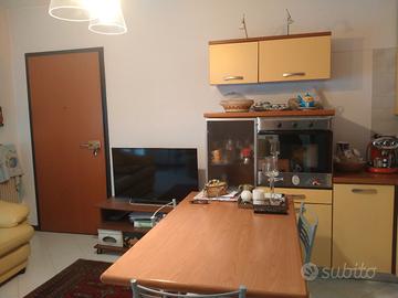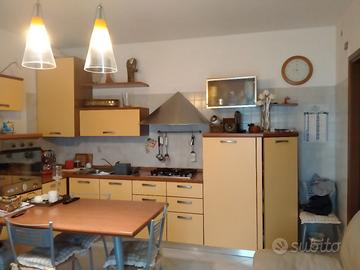 Vendo cucina completa di elettrodomestici, con forno e frigorifero nuovo, di colore giallo e color legno ciliegio, misure pareti 3.20 + 1.50 x 60. Divano a due posti in pelle di colore nocciola misure 180x95. Regalo inoltre un divano giallo a due posti in pelle, porta tv e lampada a stelo e lampadario giallo. Il Tutto come da foto. Le spese di smontaggio, carico e trasporto sono a carico dell'acquirente. Appartamento al piano terra.
