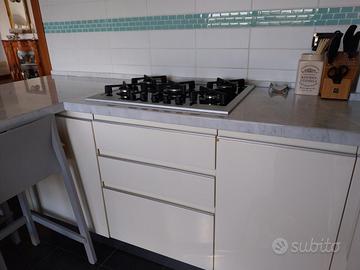 Completa di elettrodomestici REX (lavastoviglie, fuochi a gas, forno, cappa inox) e lavabo FRANKE 90 CM con rubinetto estensibile. Il frigo non è incluso. Splendida penisola in marmo 180cm x75cm.