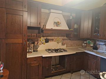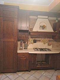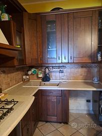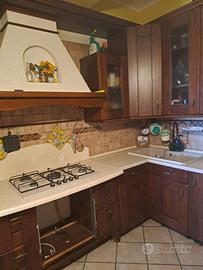 Cucina angolare in legno, tenuta in buono stato, si vende senza elettrodomestici e senza forno. Andrebbero sostituiti il rubinetto del lavandino e le griglie del piano cottura. Smontaggio e ritiro a carico dell'acquirente.
