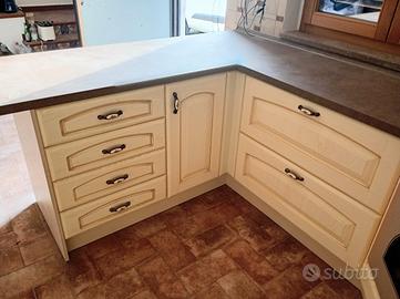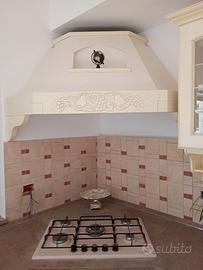 Cucina in massello di frassino con sportelli centinati e cerniere soft.