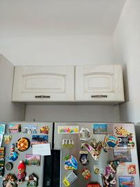 I mobili sono in buono stato: ante bianche con poro aperto e maniglie stile shabby.