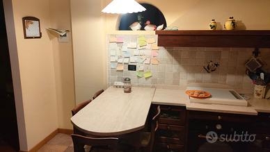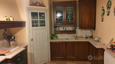Vendesi cucina a Vimercate le cui misure sono in foto. In noce massello, per cui, se si vuole, si può dipingere di altro colore. Top in marmo travertino romano. Dietro la porta, ampia dispensa di 1.20m x 1.20m. attrezzata con mensole e cestoni per pentole. Lavandino con miscelatore, doccino e tritta rifiuti. Tavolo penisola staccabile dalla cucina. Elettrodomestici inclusi: lavandino, piano cottura a gas (entrambi Franke) e cappa aspirante. 4 sgabelli se si vuole inclusi. Cucina usata ma ancora perfettamente funzionante, fatta da artigiani e con materiali di pregio. Da smontare. Si trova al 1mo piano senza ascensore accessibile facilmente a un furgone. Prezzo: €2500.