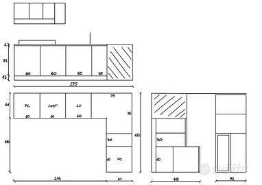 Cucina modello Smart neck in laminato L 275x175cm H219cm con top in laminato HPL 1,2cm