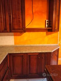 Cucina Scavolini in legno ciliegio,con forno e piano cottura funzionanti,da aggiustare il cassettone delle pentole e lo scolapiatti,per il resto è in buone condizioni. Da smontare a carico dell'acquirente.