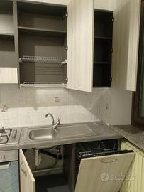 Cucina seminuova, poco utilizzata. Lunga cm 240, profonda cm 60 nella parte bassa e cm 33,5 nella parte alta. Dotata di forno e lavastoviglie. Resterà montata fino a mercoledì 4 marzo, dopodiché verrà smontata.