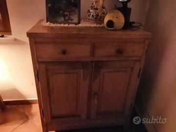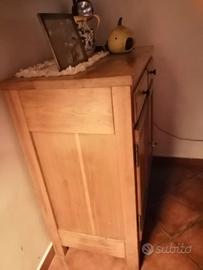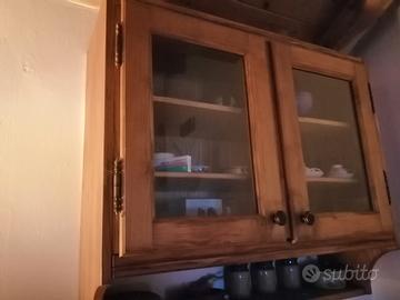 Cucina in castagno composta da tavolo con panchette, n. 2 vetrine con vetri molati, n.1 scolapiatti, n.1 madia.