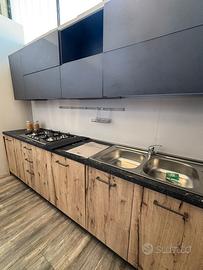 Cucina NUOVA di fine serie 304x 364 mt lato lavello. Si può anche cambiare la disposizione degli elementi poiché compreso nel prezzo c’è un top in laminato NUOVO ancora da tagliare e modificare in base alle vostre misure.