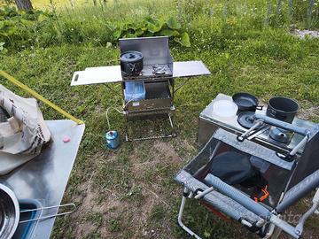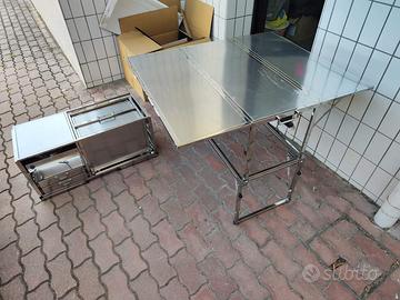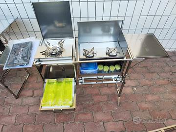 Vendo cucina completa da campeggio della" dare to be different" comprata l'anno scorso , la cucina è interamente in acciaio inox completa di tutto , tavolo, 3 fuochi di cui 2 sono nell mobiletto a parte che può essere usato per sessioni brevi, il mobiletto piccolo può essere riposto nel mobile grande ed essere trasportato con facilità.