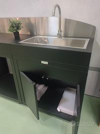 OFFERTA PROMO EXPO 2026 Robusta e funzionale nell'utilizzo. Questa cucina è composta da: - 1 modulo lavandino chiuso con due ante - 1 modulo piano di lavoro aperto - 1 modulo piano - alza post. Inox Dimensioni cucina: L 240 cm H 92 cm P 55 cm Diemensioni alza post.: 24 cm Plancia esclusa Consegna e montaggio esclusi Prezzo originale 2.736 €