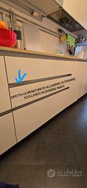Le misure sono in foto. A tutte le misure in foto bisogna aggiungere 4 cm a dx e sx per bordino di rifinitura. DIFETTI: come in foto, le barrette di rifinitura in alluminio si stanno scollando. La chiusura degli sportelli è a calamita e un paio sono difettose. PREGI: il rivestimento è integro, i cassetti sono a rientro controllato, lascio i tappetini antiscivolo interni ai ripiani. Il forno da 90cm è LOFRA ed è stato acquistato 6 anni fa, il piano cottura è WHIRPOOL eXelium.