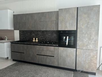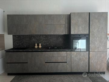 Propongo cucina moderna da 350 cm totali, finitura effetto cemento materico con particolari in nero opaco. Disponibile sia nuova che in pronta consegna, in base alle esigenze. Composizione modulare (adattabile su misura): Dotazione inclusa: forno multifunzione ventilato con programma pizza piano cottura a 4 fuochi smaltato nero lavastoviglie da incasso classe A++ frigorifero No Frost capienza 300 litri cappa integrata con luce LED lavello nero in materiale composito con miscelatore Prezzo promozionale: 8.999 € (sconto già applicato) Possibilità di consegna e installazione. Disponibile in zona Gallarate e Busto Arsizio. Per info: 𝟥𝟥𝟫𝟣𝟩𝟢𝟥𝟧𝟫𝟣
