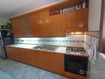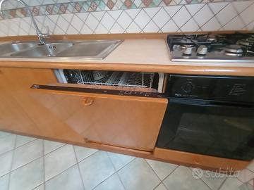 Cucina Del Tongo, Frassino, base, profondità cm.60 lunghezza cm.420, pensili alti cm.100., completa di lavastoviglie Rex, Forno Rex, piano cottura da cm. 60 marca Ariston. Lavello in acciaio, due vasche con gocciolatoio cm. 115. compreso rubinetto .Pensili e Cappa sotto-illuminati. Da ritirare in loco a cura dell'acquirente.