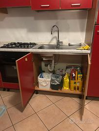 Cucina lineare di 302 cm e 60 cm di profondità divisa in moduli inclusi sia gli elettrodomestici quali frigorifero, forno elettrico, piano cottura che il lavello con miscelatore. La cucina è già disponibile per il ritiro.