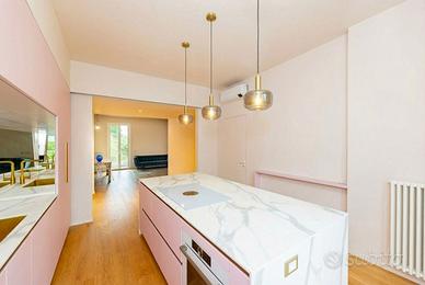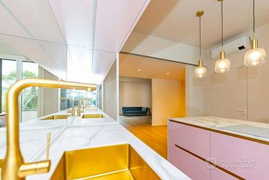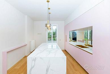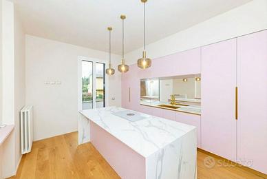 Occasione imperdibile! Vendo, causa trasloco, cucina di design marca ASK, usata solo per un mese. Caratteristiche: - Laccatura rosa opaco - Gola/zoccolo e maniglie oro satinato - Scocca interna bianco - Top e fianchi isola Hpl effetto marmo Calacatta - Rivestimento a specchio Completa di elettrodomestici top gamma: - Lavello - Piano cottura ad induzione con cappa integrata - Forno - Lavastoviglie - 2 frigoriferi La cucina è stata acquistata nel 2022 al costo di € 25.000. Smontaggio e trasporto sono a carico dell'acquirente.