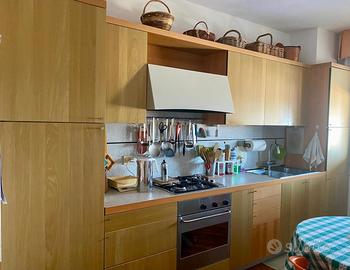 Cucina Valcucine in faggio tinto anilina color salvia di 4 m lineari e madia di cm 150, con top e para schizzi in materiale super resistente. Dotata di due colonne ed elettrodomestici(forno whirlpool, frigo Electrolux e lavastoviglie Candy) di recente sostituzione, acquistati 3 anni fa. Piano cottura a gas funzionante. Completa di cappa,