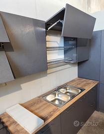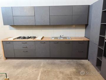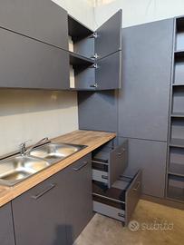 Cucina di fine serie NUOVA di quasi 7 metri, adattabile alle vostre misure grazie ad un top in laminato sp. 4 cm ancora da tagliare e forare in base alle vostre misure.