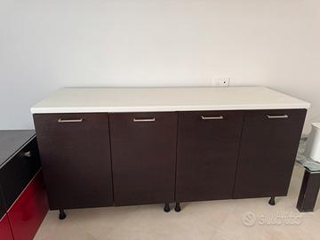 La cucina preserta il top un po rovinato parte posteriore. Invece il mobile con base distaccata è intatto.