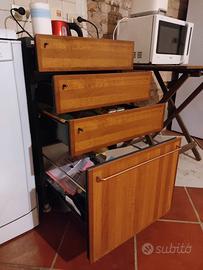Cucina in ottime condizioni, disponibile già smontata. Non sono compresi forno e piano cottura. Solo il mobile base esterno sinistra ha segni di usura internamente. Cerniere e ferramenta perfettamente funzionanti. Cambio per abbattimento camino adiacente. Occasione!