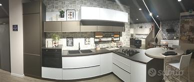 Cucina diamante con penisola bifacciale 387x213 completa di elettrodomestici . Bancone rotondo diametro 120. Prezzo escluso trasporto e montaggio.