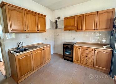 Vendesi cucina con ante in legno rovere, composta da: Base cm. L 135 x P 58 x H 87,5. Pensili cm. L 135 x P 33,5 x H 75 con cornice. Base cm. L 120 x P 58 x H 87,5 Pensili con cappa cm. L 180 x P 33,5 x H 75 con cornice. Tavolo cm. L 119 x P 78 x H 79 con 4 sedie impagliate. Cucina con forno a gas cm. L 50 x P 50 x H 87 con coperchio Disponibilità immediata Trasporto a carico dell'acquirente