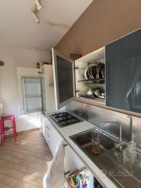 Cucina Doimo linea essensiale cestoni con gola, alzatina in acciaio, ante laccate bianche lucide, pensili alti in vetro con telaio in alluminio e staccata anche il mobile dispensa piattaia. La cucina è completa di elettrodomestici (forno, frigo ad incasso, lavastoviglie, lavello, piano cottura e cappa) in ottimo stato (è solo da pulire bene) vendo a soli 2500 euro a chi la viene a prenderla per primo.