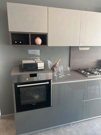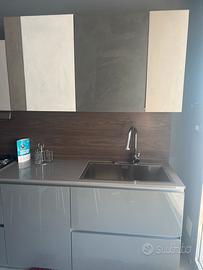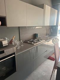 Cucina laccata lucida (basi) e pensili in malta cemento vero . Con top