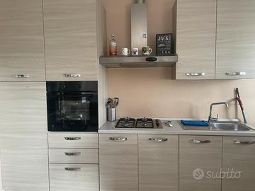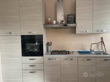 Per rinnovo locali vendo, esclusivamente in coppia, cucina lineare e divano letto coordinati di Mondo Convenienza. Entrambi i mobili sono in ottime condizioni e pronti all'uso. 1. CUCINA LINEARE Cucina moderna e funzionale con finitura legno chiaro. • Elettrodomestici inclusi: Piano cottura 4 fuochi, Forno a colonna (comodissimo), Cappa in acciaio e Lavello con miscelatore. • Composizione: Include basi, pensili e colonna forno/dispensa. • Stato: Ben tenuta, cerniere e cassetti perfettamente funzionanti. 2. DIVANO LETTO DAHLIA Elegante divano 3 posti con mix di materiali. • Dimensioni: L.225 x P.84 x H.91 cm. • Materiali: Struttura in eco-pelle bianca e seduta in tessuto grigio. • Funzione Letto: Meccanismo "clic-clac" veloce e pratico per gli ospiti. • Funzione Contenitore: Ampio vano sotto la seduta per coperte e cuscini.