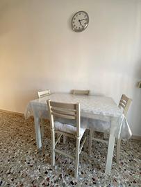 Vendo cucina effetto legno e laccato bianco (2.55m), come da foto, con tavolo (70 x 110 - allungabile) e 4 sedie, in aggiunta parete soggiorno faggio e bianco laccato (2.45m), componibile come si preferisce, con tavolo bianco (90 x 140 - allungabile) e 6 sedie pelle color fango. La tv non è in vendita. Gli arredi sono venduti insieme. Se separatamente, il prezzo verrà comunicato a seconda di ciò a cui si è interessati. Gli arredi si vendono per sgombero locale, quindi il prezzo è stato onerosamente ribassato.