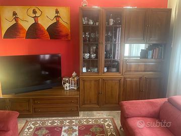 Vendo come da titolo cucina in buon stato in legno completa di tavolo e sedie e soggiorno. Attenzione NON sono inclusi frigorifero, forno e lavastoviglie. Mentre il lavandino e il gas da 90cm in acciaio inox e la cappa sono compresi e sono nuovi (sostituiti nel 2024). Prezzo trattabile dopo visione per chi viene e smontarseli e provvedere al trasporto.