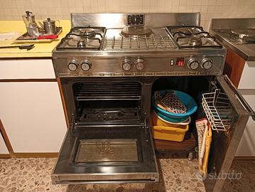 Modello vintage/retro, risalente agli anni ’60–’70, con struttura in acciaio inox e doppio vano inferiore (forno e scalda vivande/secondo vano).