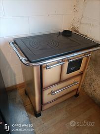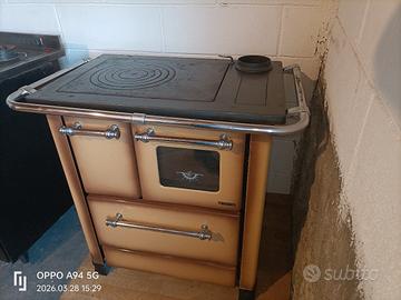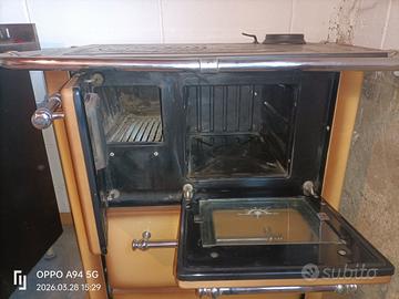 Cucina economica a legna della Nordica. Condizioni eccellenti, focolare interamente in ghisa e sportello fornello interamente cromato. Misura con corrimano 90*60 H 87cm Potenza 5kW Su richiesta possibilità di consegna e/o spedizione a domicilio