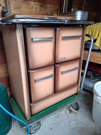 Cucina economica / tufa Lincar. Smaltatura perfetta , qualche imperfezione nelle cromature. Completa di tubi per scarico fumi