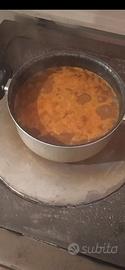 restaurata trattata antiruggine lucidata sigillata pasta termica nastro termico, bicomponente metallico e come da foto sì vede collaudata con forte tiraggio del fumo a destra perfettamente funzionante, con pezzi canna comprati nuovi come si vede smorzatore e diffusore di calore per l' ambiente con buona resa di calore e buon risparmio in bolletta, qualche legnetto e pellett sopra, un tronchetto o due e si riscalda l' ambiente per diverse ore anche quando è finito il fuoco.