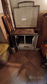 Cucina economica/stufa anni 50/70, piano cottura con anelli in ghisa, struttura solida e pesante in metallo smaltato, ferma da anni, ideale per esposizione arredamento rustico/vintage, collezionismo, taverne, agriturismi, ambienti in stile country/atmosfera rurale.