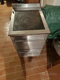 Vendo cucina economica a legna, larghezza 48cm profonditá 60cm, camino sul lato sinistro, finitura in acciaio inox satinato, ben tenuta e perfettamente funzionante.