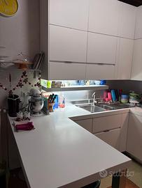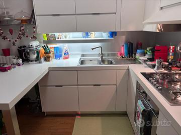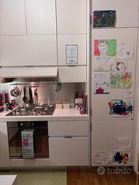 Vendo cucina Ernesto Meda modello Eletta in ottima condizione, laccata bianca corredata di: 1) Forno Smeg pirolitico 2) Piano cottura Smeg design Renzo Piano 3) Frigorifero ad incasdo Whirlpool del 2022 La cucina è ad angolo con dimensioni 2500x 2500mm su i due lati ed altezza 2670mm e dotata di tavolo a penisola. I pistoni della cappa sono stati sostituiti da poco. Manca solo un pomello del forno. Sara disponibile dalla prima o seconda settimana di maggio già smontata e pronta al ritiro (a carico dell’acquirente). Si accettano solamente pagamenti in contanti al ritiro.