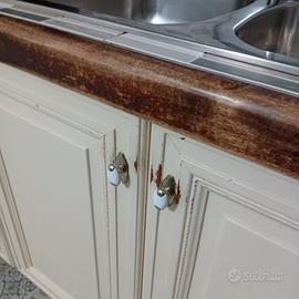 vendo cucina componibile come da foto. la cucina è stata pitturata con vernice a gesso ma presenta alcuni segni di usura prezzo trattabile