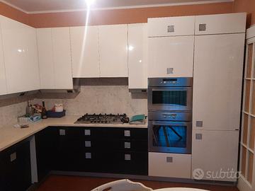 cucina marca Ernesto Meda ben tenuta con top e schienale in marmo bianco. Completa di forno tradizionale e forno microonde Whirlpool, frigorifero da incasso Haier (elettrodomestici sostituiti pochi anni fa) e piano cottura a gas. dimensioni: 255 cm x 207 cm + 60 cm colonna forni +60 cm colonna frigo. disponibili foto di dettagli su richiesta. smontaggio e trasporto a carico dell'acquirente. posizionata al piano terra comoda da caricare. preferibile contatto su whatsapp o messaggi.