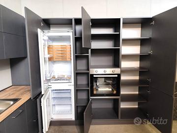 Cucina di fine serie NUOVA di quasi 7 metri, adattabile alle vostre misure grazie ad un top in laminato sp. 4 cm ancora da tagliare e forare in base alle vostre misure.