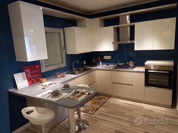 cucina come foto mod,foodschelf (SCAVOLINI) per rinnovo esposizione cm.290 lato sx cm 260 lato dx pensili laccati bianco lucido basi decorativo grigio gabbiano compreso trasporto e montaggio nel raggio di 50 KM