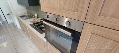 Gli elettrodomestici sono piano di cottura a 5 fuochi, forno ventilato, lavastoviglie, frigo freezer, cappa inox, lavello da 1 vasca inox e miscelatore.