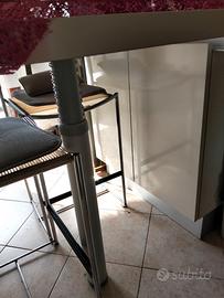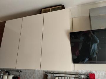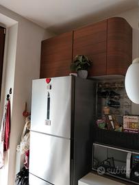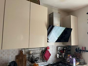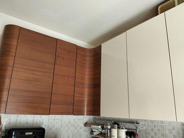 Bella soluzione angolare marca Febal con pensili alti 90cm e basi profonde 60cm. Ante laccate lucide color panna ed elementi stondati in legno effetto dogato. Forno ( questo da rivedere) a metà altezza con sotto cassettone da 60cm, anta ad angolo con piano di appoggio, lavello acciaio due vasche sgocciolato con due basi da 60cm. Cappa in vetro nero da 90cm, fuochi a gas da 4 con cassettiera da 60cm e ulteriore base da 60cm finale. La lavastoviglie al momento è assente ma c'è possibilità di inserirne una nuova, se di interesse. Lato corto 160cm lato lungo 318. Penisola snack sporgente 120cm larga 90cm con sotto base a due ante. Altro pensile in legno -opzionale- alto 60cm lungo 120cm. Piano da 3cm in tinta e zoccolino in alluminio. Prezzo trattabile e valutazione eventuale accessori sospesi a barra in metallo.