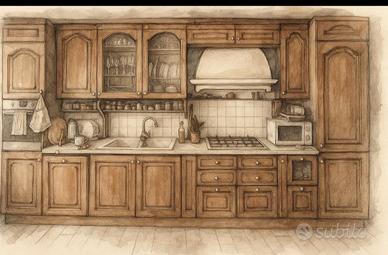 Cucina come un foto 4,65 x 2,40m (disponibile fino a 3m a soffitto con parte aggiunta dopo). Qualità Febal. Si vende cucina compreso macchina del gas e lavandino. Non inclusa lavastoviglie e forno.