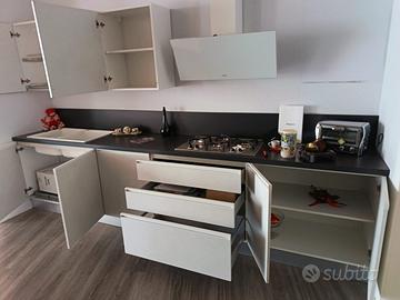 Vendo cucina Febal bianca, nuova da esposizione come in foto.Compresi lavabo doppio bianco in silgranit,cappa aspirante, piano cottura a gas e top nero in laminato di 4 cm.Montaggio e trasporto non sono compresi nel prezzo.